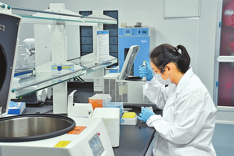 周口市农科院智慧岛实验室科研人员正在提取小麦叶片DNA